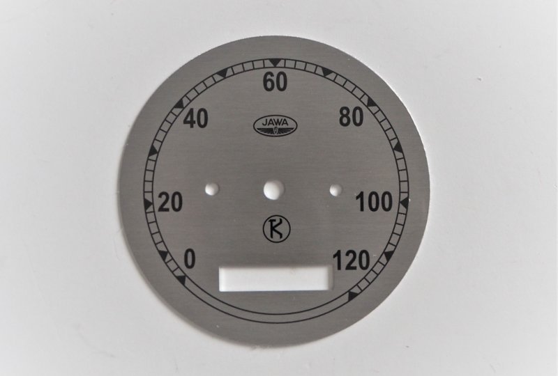 Cyferblat licznika 0-120km/h, srebrno-czarny, K, Jawa 250 Perak FJ