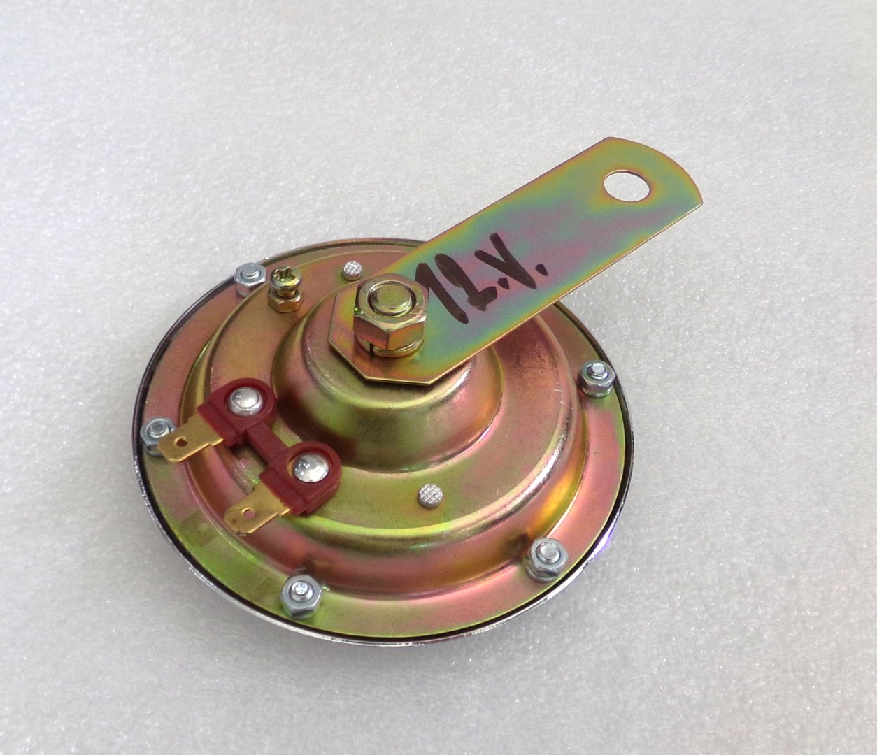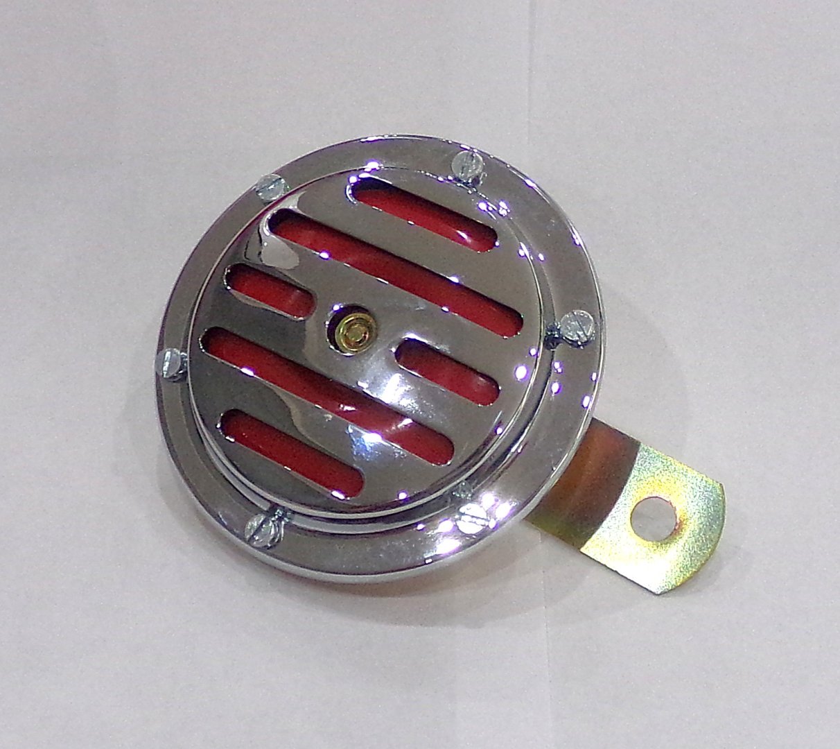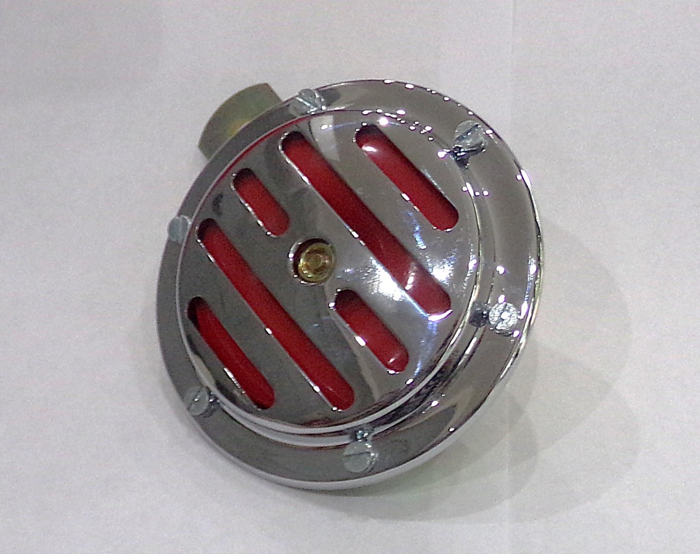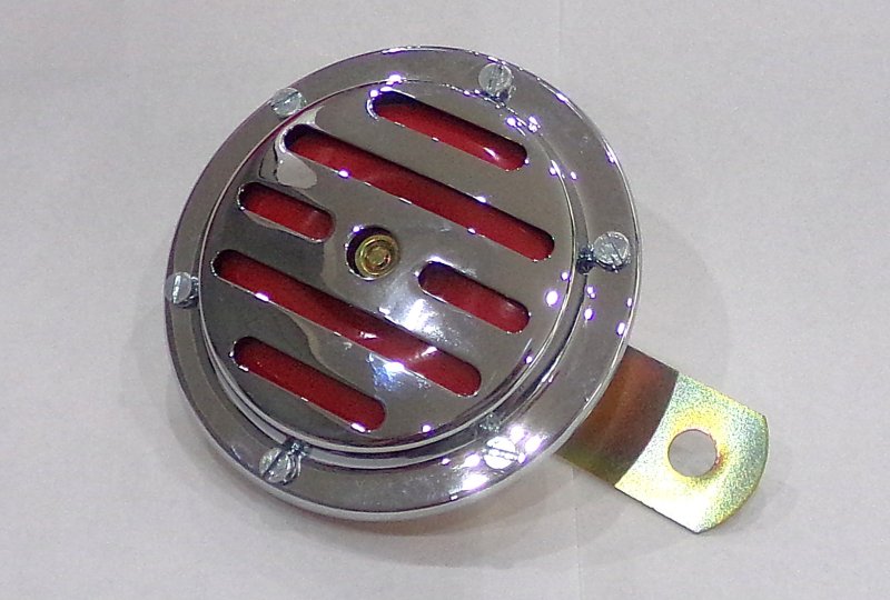 Klakson 12V czerwony, 100 mm, chrom, oryginał, Jawa 638-640