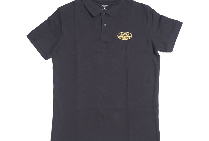 Koszulka bawełniana polo, granatowa, logo JAWA-złote, rozmiar 3XL