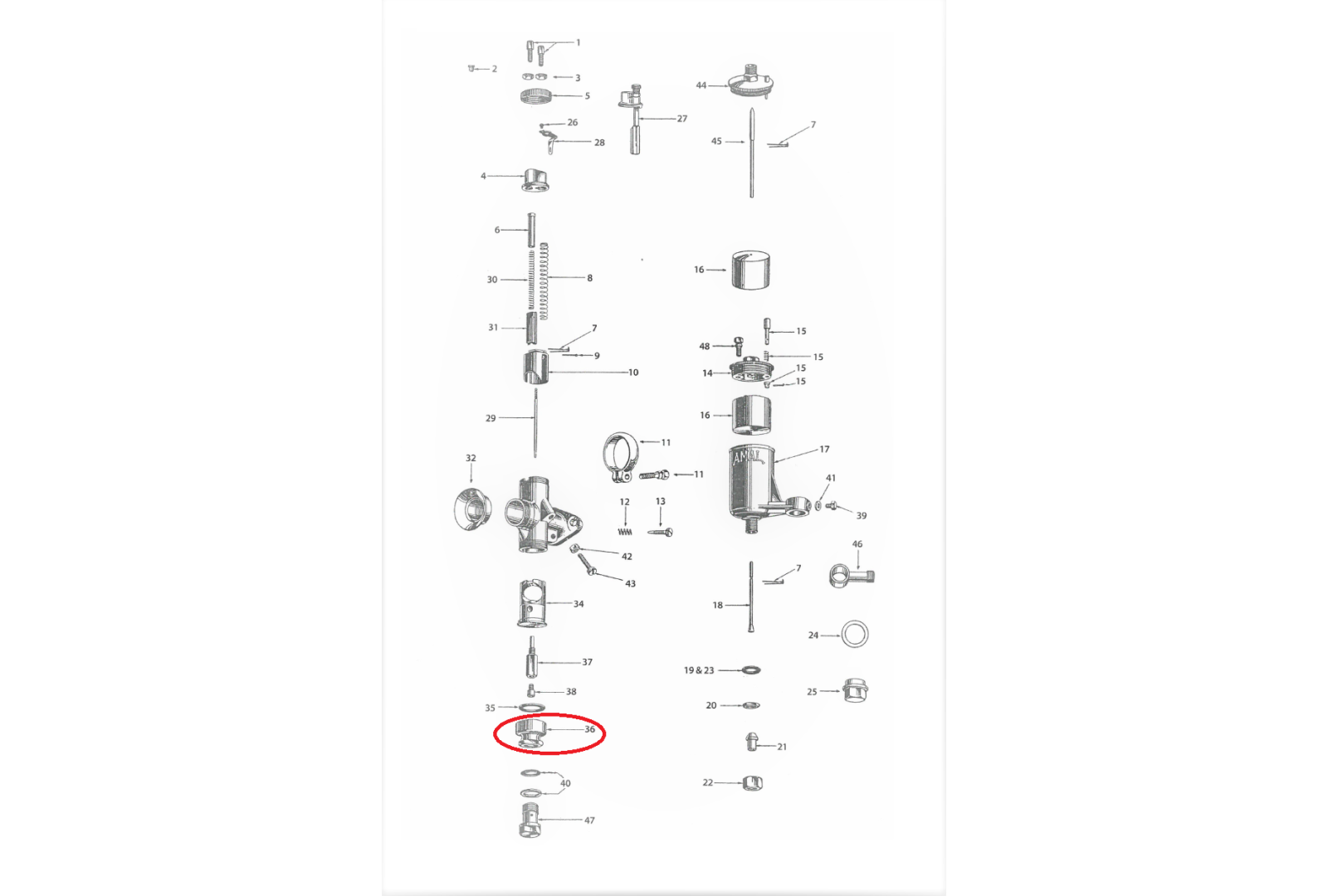 Nakrętka dolna korpusu gaźnika, aluminium, AMAL 76/276