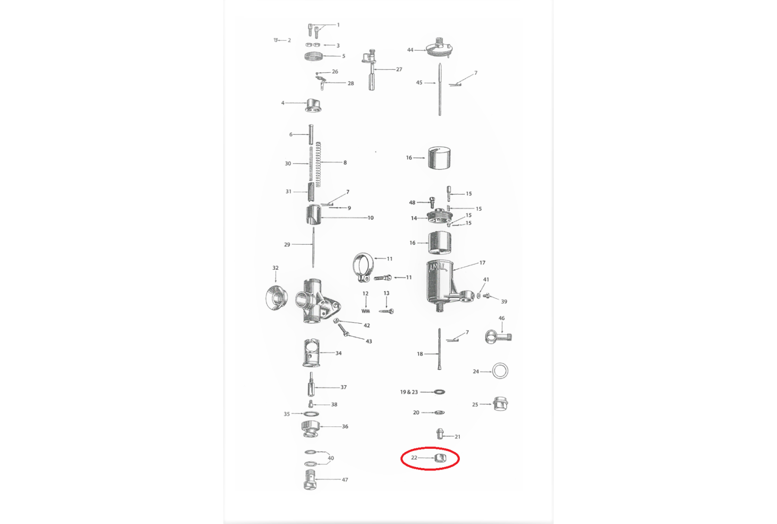 Nakrętka króćca paliwa M13, mosiądz, AMAL