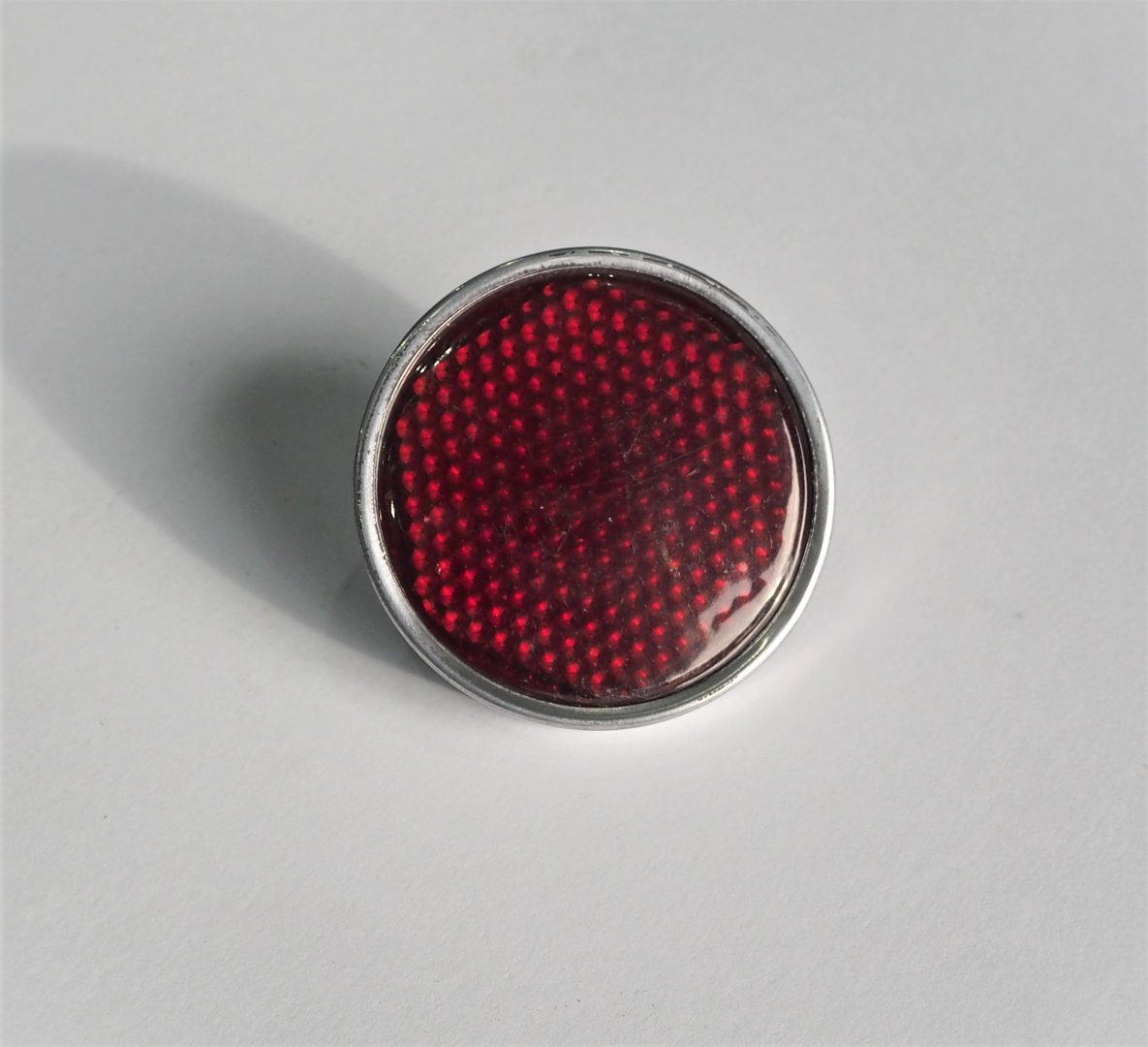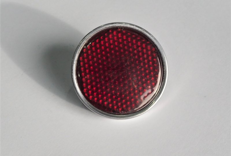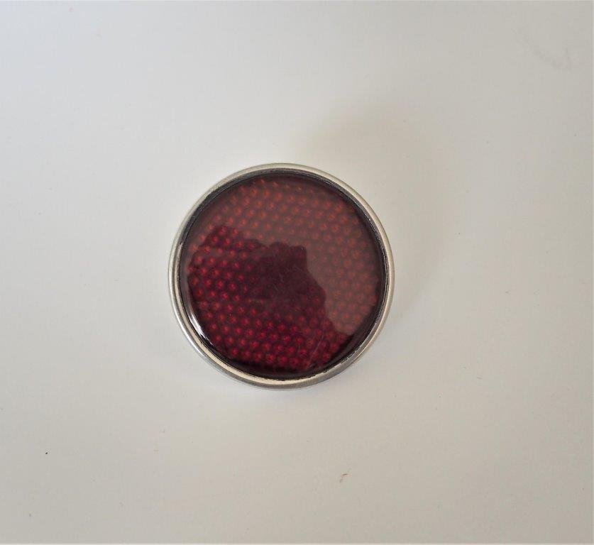 Odblask czerwony ze śrubką i aluminiową rameczką, 54mm, plastik, Jawa