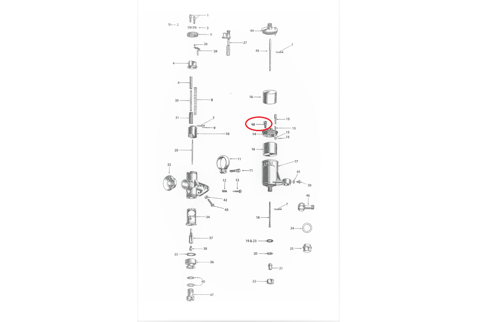 Śruba blokady komory pływakowej, calowa, ocynk, AMAL