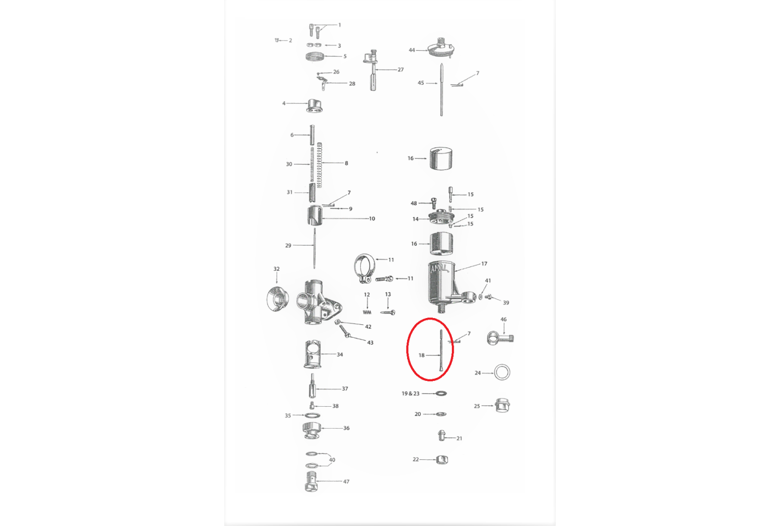 Zaworek iglicowy L74,4, AMAL 76/276